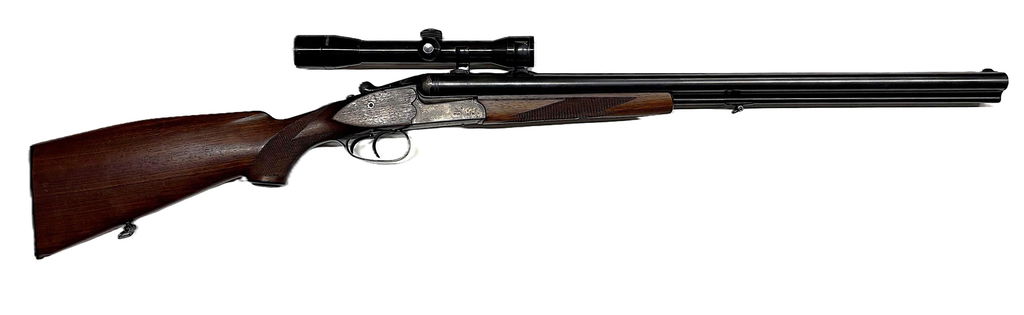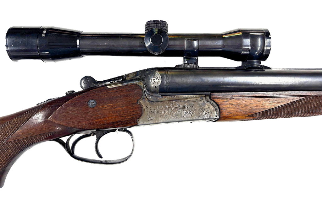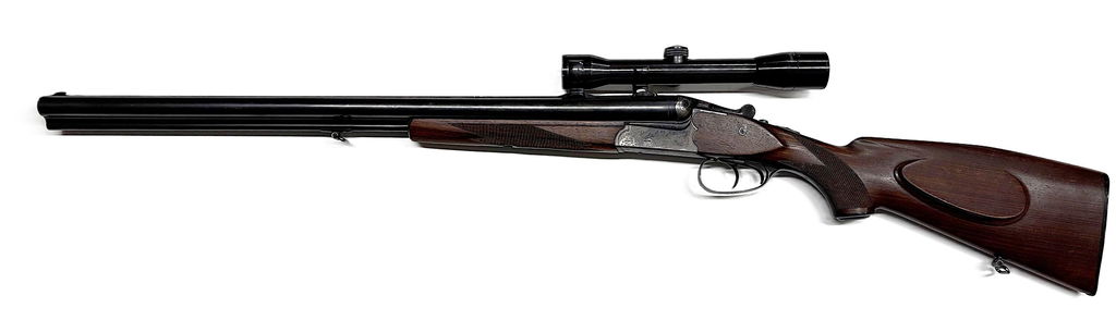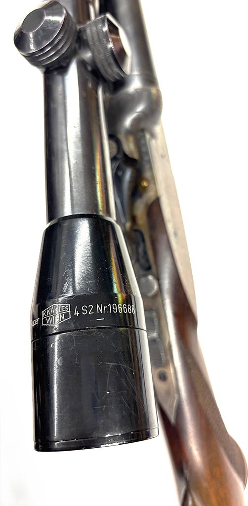 Merkel drilling med klass-2 kulpipa. Vapnet har hakmontage med ett Kahles Helia Super.